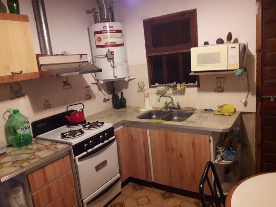 Y el depto. tipo Casa con entrada independiente y garage pasante para vs. autos, con cocina- comedor y living integrados de 7,70 mts. x 3 mts. hall de distrib. baño completo, 2 cómodos dormitorios y amplio patio libre. ( A este depto. le faltan las terminaciones, colocación de pisos cerámicos, muebles de cocina y al baño solo los accesorios).