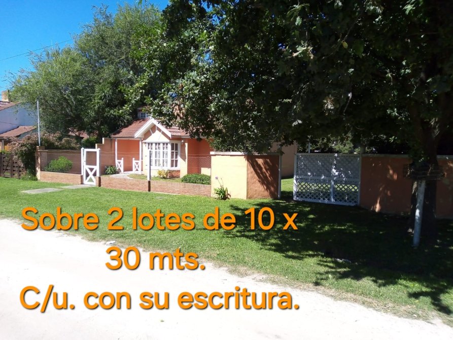 MUY LINDA CASA CON TRES DORMITORIOS, COCINA AMOBLADA, BAÑO COMPLETO, LIVING, AMPLIO COMEDOR, PATIO SEMICUBIERTO, JARDÍN, RODEADA DE UN GRAN PARQUE. ESTÁ CONSTRUÍDA SOBRE UN LOTE DE 10MTS. POR 30 MTS. Y SE ANEXO EL LOTE LINDERO CON IGUALES MEDIDAS QUE ESTÁ ESCRITURADO APARTE.
