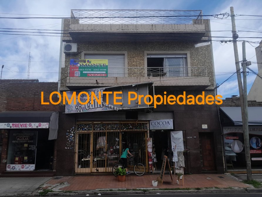 LOCAL COMERCIAL DE 145 M2 ( FRENTE 7,21 y a los 5 mts. se ensancha a 8,60 mts, X 17,32 MTS. de FONDO), dividido en 2 locales, Y EN PLANTA ALTA UN PISO: CON LIVING DE (4,71 MTS. X 7,20 MTS) CON SALIDA A BALCÓN CORRIDO AL IGUAL A UNO DE LOS DOS DORMITORIOS, AMBOS (3.90 MTS. X 3,50 MTS.) CON PLACARES EMPOTRADOS, BAÑO COMPLETO, COCINA AMOBLADA DE USO DIARIO (4,70MTS. X 7MTS) CON SALIDA AL PATIO (7MTS. X 3,50MTS. CON PARRILLA), DESPENSA, LAVADERO CUBIERTO Y TERRAZA DE 105 M2, CON CUARTO DE ENSERES (3,45 MTS. X 3,40MTS.). ES EXCELENTE LA UBICACIÓN QUE TIENE, AL ESTAR A 15 MTS. DE J. D. PERÓN, LE DA UN ALTO PORCENTAJE DE RENTABILIDAD Y UNA BUENA INVERSIÓN.