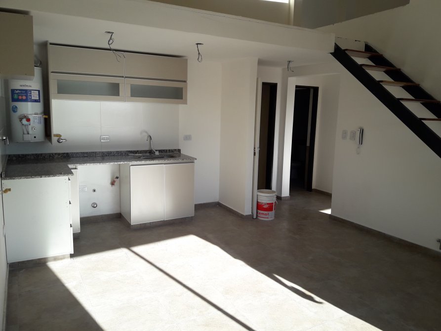 Depto de 3 1/2 amb en dúplex al frente: 1º nivel, cocina y living-comedor integrada (4.15 x 6.30 mts) con salida a balcón, hall de distrib, dormitorio (3.20 x 5 mts) con vestidor (2 x 2.09 mts); y 2º nivel, dormitorio (3.20 x 5 mts) y escritorio o estar (4.15 x 1.70 mts). A estrenar.