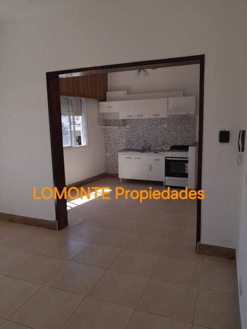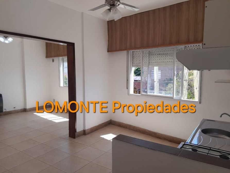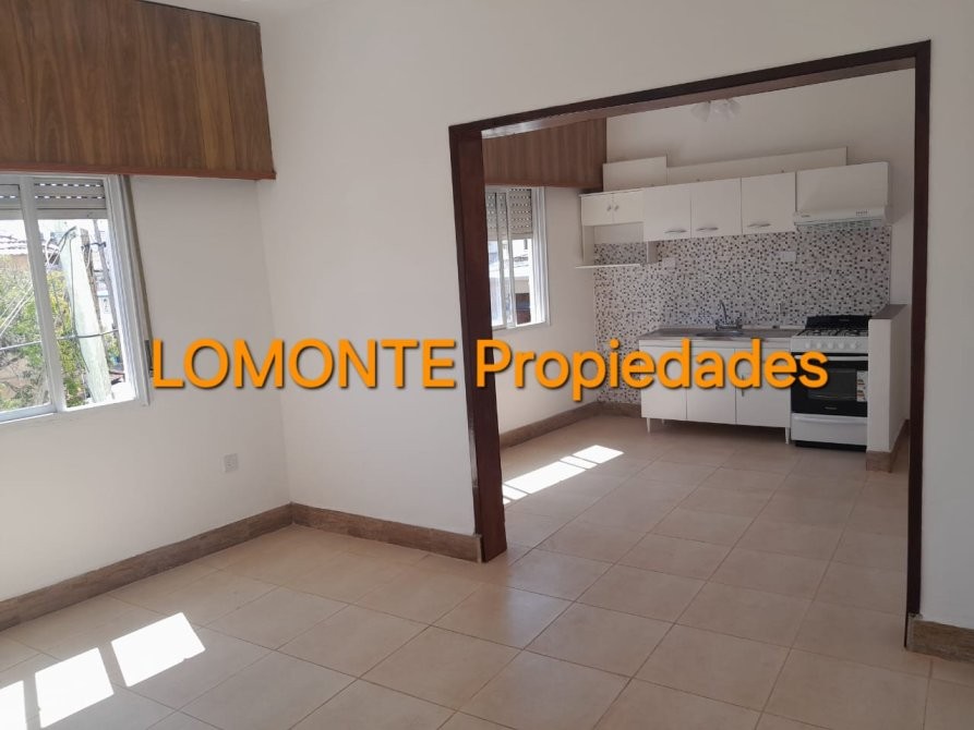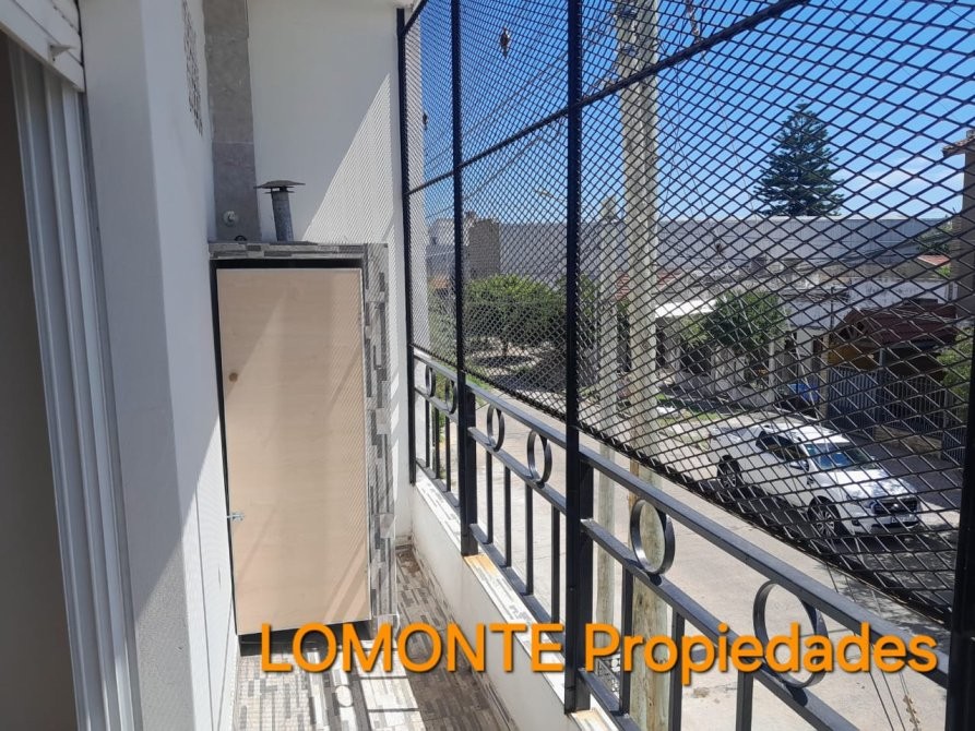 El área social está compuesta por un living que se integra con la cocina, la cual está equipada con muebles bajo mesada y alacena, además de cocina a gas. Los ambientes principales disponen de ventanas al exterior, lo que permite vistas hacia la calle y aporta ventilación natural. El departamento incluye un balcón al frente, protegido con cerramiento metálico, que ofrece un espacio adicional al aire libre.